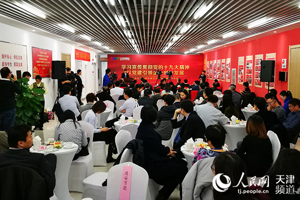 天津富通集团、协和干细胞基因工程有限公司、天津罗斯诺普信息技术有限公司、天津市百泰首饰制造有限公司、五八同城信息技术有限公司、天津市高新技术企业协会、中广新型媒体研究院,道本科技等企业有关负责同志分享了学习贯彻十九大精神心得体会、企业党建工作经验,以及进一步贯彻落实党的十九大精神,以党建工作推动企业创新发展的部署举措。