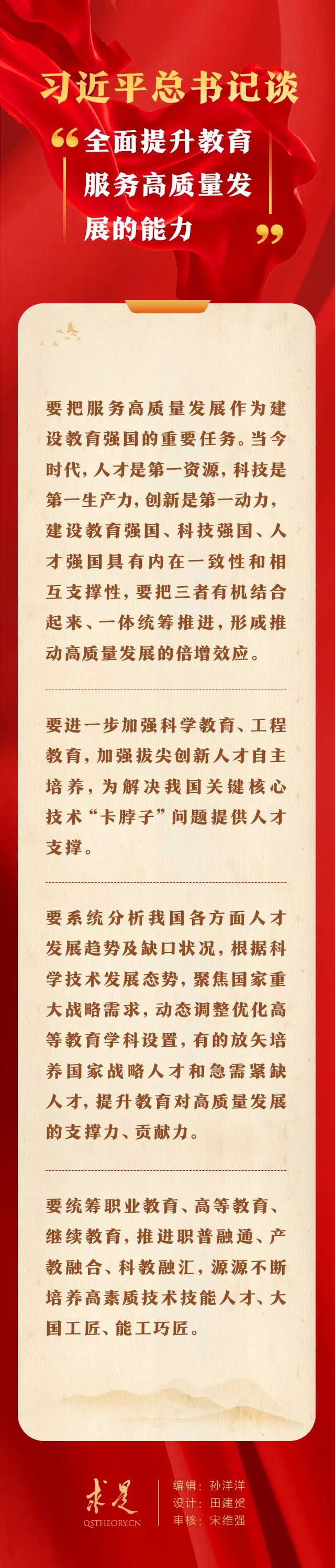习近平总书记谈“全面提升教育服务高质量发展的能力”