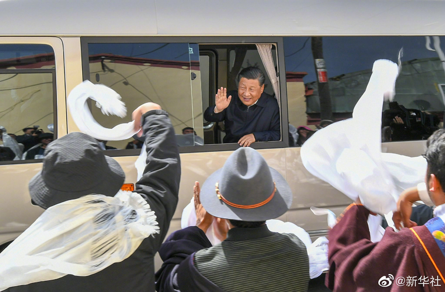 8日下午,习近平总书记在青海省刚察县沙柳河镇果洛藏贡麻村口,对热情涌来的村民们说,我们都是一家人,我们都是兄弟姐妹。这个村子变化很大,看到大家过得很幸福,我们很欣慰,能感受到大家对党和政府的深情厚谊。到新中国成立一百年时,中华民族一定能够更加坚强地屹立于世界民族之林。到那个时候,一个幸福的国家、一个现代化的国家,一定会建设起来。中华民族就像石榴籽一样紧紧抱在一起,我们都是中华民族共同体的一分子。在全面建设社会主义现代化国家进程中,一个民族都不能少。一定要坚信明天会更好。(文字记者:张晓松、朱基钗;摄影记者:李学仁、谢环驰)