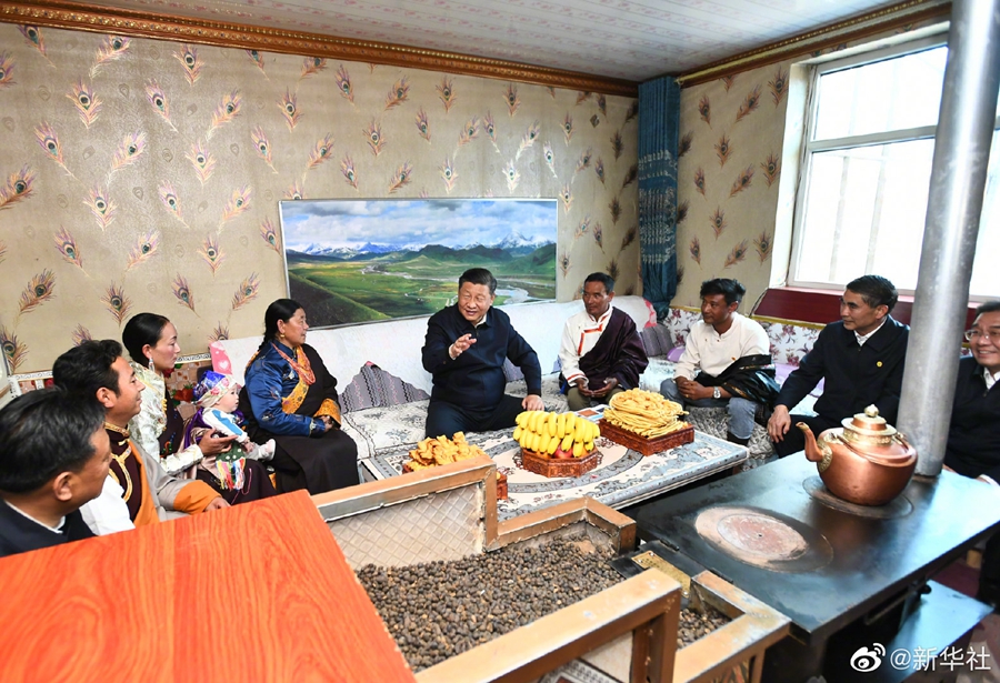8日下午,习近平总书记来到海北藏族自治州刚察县沙柳河镇果洛藏贡麻村,走进牧民索南才让家中,看望慰问藏族群众。索南才让说,牧民生活好,全靠党的政策好,衷心感谢党、衷心感谢总书记。习近平指出,我们党成立一百年了,为什么老百姓衷心拥护中国共产党?因为我们党始终全心全意为人民服务、为各民族谋幸福。我们一百年来取得的成绩,赢得了民心,在建设社会主义现代化国家新征程上,我们要走得更好。(文字记者:张晓松、朱基钗;摄影记者:李学仁、谢环驰)