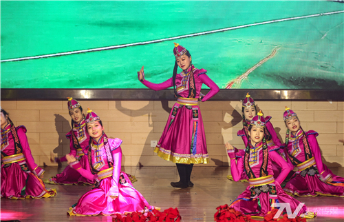 第二篇章“岁稔年丰即兴农”中,乐器合奏《时和岁丰》展现了风调雨顺、五谷丰登的场景,全国优秀教师刘峄现场制作了压花作品《稻香岁丰》。蒙古舞《阿穆尔塞罕》展示出草原水丰牛壮、牧民喜庆收获的场景。