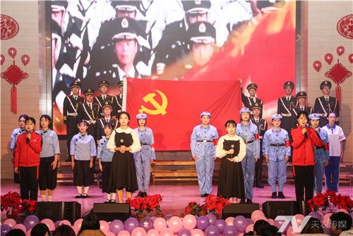 第四篇章“不忘初心跟党走”中,京剧《红梅赞》和朗诵《致先辈》表达了师生对先烈的缅怀之意,爱党之情。《不忘初心》唱出天农人的心声,新时代天农人始终坚持不忘初心、牢记使命,饮水思源,砥砺前进,永远跟党走。