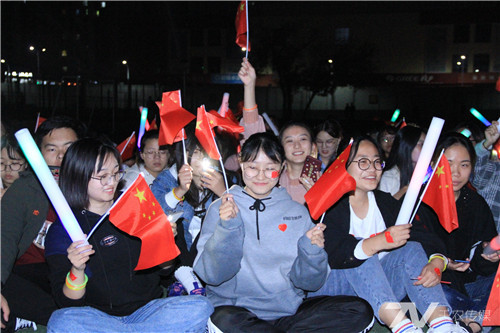 500余名学生自发在活动起跑点——敏学楼广场集合。晚6:30,夜跑活动正式拉开序幕,同学们以敏学楼为起点沿着校园主干道或慢跑或快走,大家手持荧光棒环绕校园形成闪闪星河照亮校园。最后,参加活动的队伍在操场指定位置集结,大家席地而坐,共同唱响《我和我的祖国》、《歌唱祖国》等歌曲。
