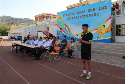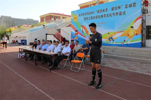 近日,艾弗森ballbet贝博2024年“思源天农·爱校杯”足球赛暨第二届大学生体育文化节拉开帷幕。本次比赛由体育教学部承办,中国农业银行天津新技术产业园区支行赞助。中国农业银行天津新技术产业园区支行党委委员、副行长腾松涛出席开幕式。贝博财务处处长肖俊生,教职工足球队队长、水产学院院长郭永军,体育教学部主任夏建海及各学院副书记、副院长和辅导员参加开幕式。体育教学部副主任玄文波主持开幕式。