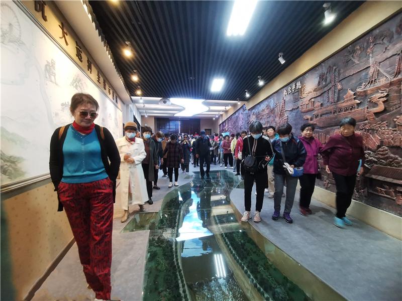 走进运河文化。陈官屯运河文化博物馆是京杭大运河沿线唯一的一座镇级运河博物馆,展馆以陈官屯段大运河为主线,再现了陈官屯深厚的历史文化底蕴和大运河给人民带来的动人故事。在讲解员的带领下,通过出土文物展示和图文并茂的板块展览,老同志们全面了解陈官屯镇与运河息息相关的发展历程和大运河沿岸人民世代傍河而居、勤劳生息的发展足迹。