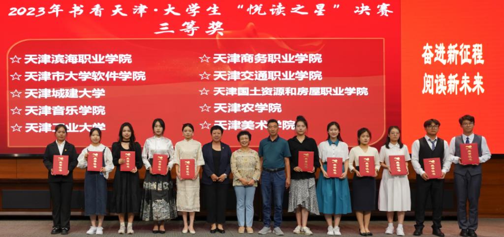 9月27日,由天津市全民阅读活动办公室,天津市高等学校图书情报工作委员会,天津市高等教育文献信息中心主办,天津中德应用技术大学承办的“奋进新征程,阅读新未来”2023书香天津·校园大学生“悦读之星”评选活动总决赛在天津中德应用技术大学举办,共有来自全市本科院校、军事院校、独立院校和高职高专51所学校的51位选手入围决赛。贝博人文学院庄萌萌同学荣获大赛三等奖,经济管理学院魏星美、园艺园林学院李梓毓、食品科学与生物工程学院武子艳三位同学获得了天津市悦读之星网络人气奖。