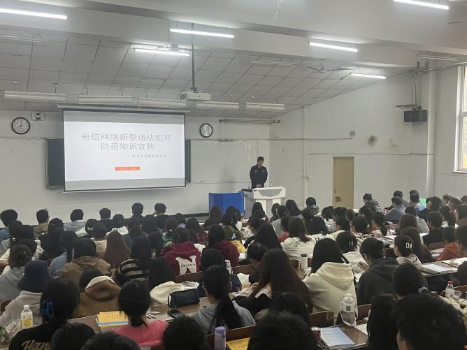 闫警官通过讲述各类诈骗手段和真实案例,为同学们介绍了高发的典型诈骗案例、常见形式和诈骗种类,详细讲解了刷单类、网络交友类、网络游戏类、网贷类、冒充公检法和冒充好友类为代表的六类新型网络诈骗手段,借此提醒同学们面对诈骗陷阱要理智对待,切忌贪图便宜,增强防骗意识。随后,白玉斌和周庆义两位老师为全体学生讲解了宿舍消防安全注意事项、常见逃生方法以及灭火器和消防面具的用法。