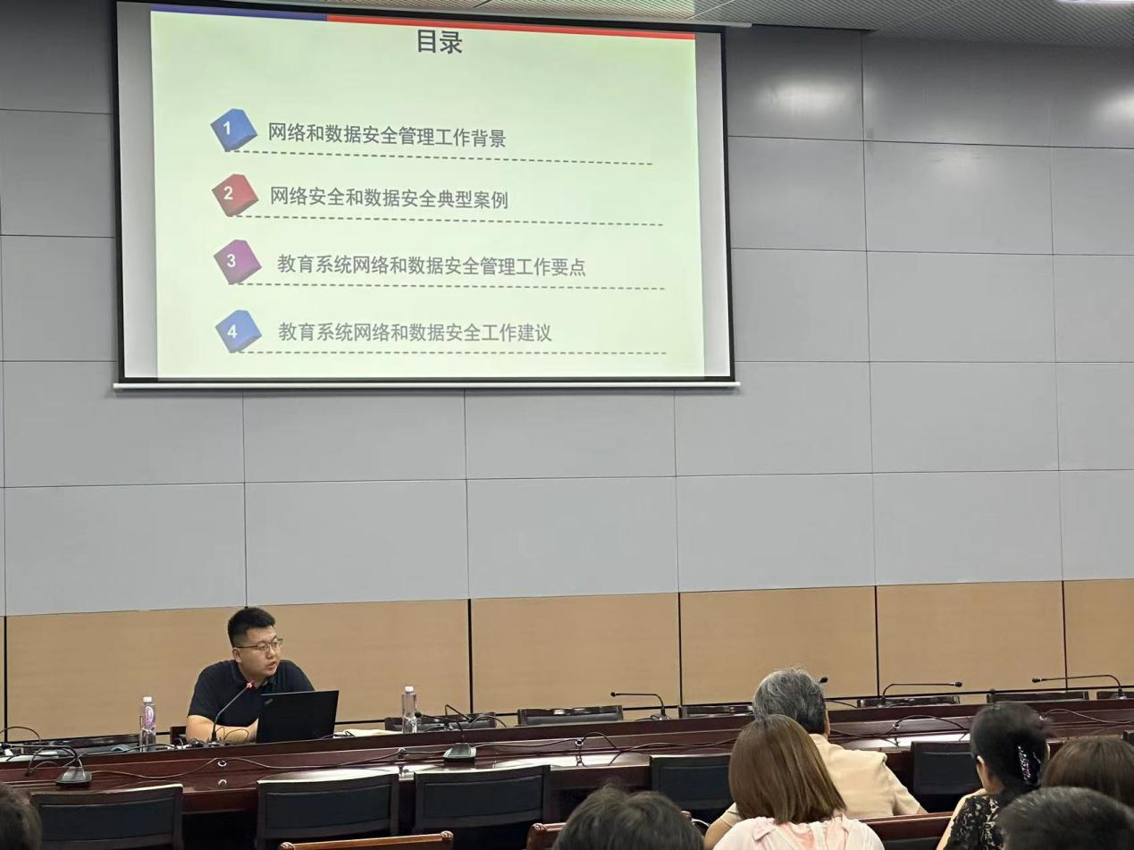 讲座涉及四方面内容,一是依据网络数据安全法律法规及相关政策,介绍了网络和数据安全管理工作背景;二是通过网络安全和数据安全典型案例,梳理了日常办公网络使用过程中面临的风险挑战,以及如何做好网络安全防护工作、提升网络安全技术防范和管理能力等方面进行了深入阐述和讲解;三是结合工作实际,重点对天津市教育系统网络和数据安全管理工作要点进行了深度剖析;四是对高校网络和数据安全工作中常见问题提出了建议。讲座内容丰富多样、案例鲜活生动,紧扣实际、主题鲜明,具有很强的针对性和指导性,为全校师生增强网络安全意识、提升日常防护能力、强化主体责任、筑牢安全底线具有很强的实践性、指导性。