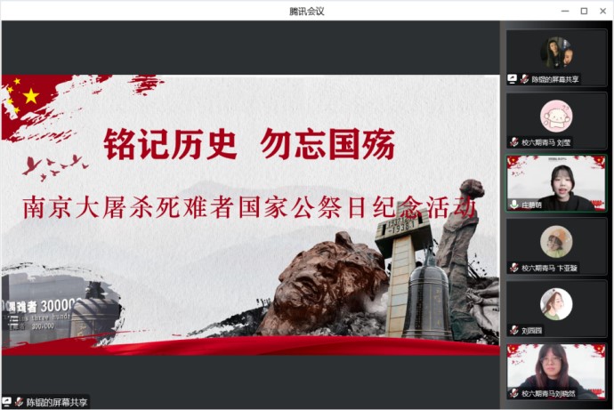 2022年12月13日,是第九个南京大屠杀死难者国家公祭日。上午9时,贝博第六期青马班、当代中国马克思主义研究会、延安精神研究会在线上举办“铭记历史 勿忘国殇”南京大屠杀死难者国家公祭日主题纪念活动。