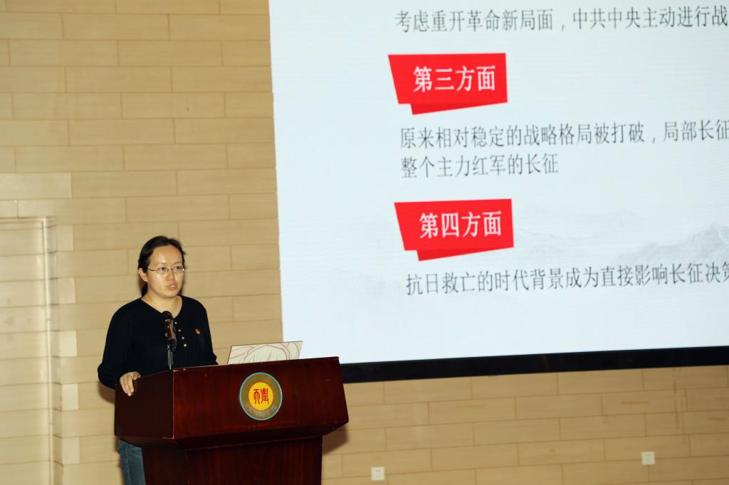 马克思主义学院谢曼老师围绕党史,结合共青团员标准和青年责任使命,以“纪念湘江战役弘扬长征精神”为主题讲授微团课,倡导广大团员青年要认真学习习近平新时代中国特色社会主义思想,感悟党史,不断增强历史责任感和使命感。