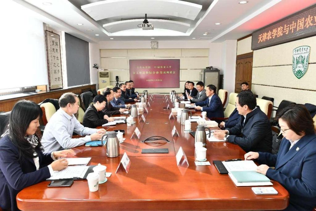 王延文指出,党的二十大对全面推进乡村振兴、加快建设农业强国作出重大战略部署,为高等农业院校改革发展指明了方向、提供了遵循;习近平总书记给中国农业大学科技小院的同学们的重要回信,对农业院校人才培养寄予厚望、提出要求。中国农业大学在服务全面推进乡村振兴、建设教育强国和农业强国进程中发挥着重要的先锋作用,希望两校在人才培养、创新平台建设、科技创新与成果转化、高水平师资队伍建设、干部交流挂职等方面进一步加强交流与合作,共同助力京津冀协同发展,共同为建设教育强国和农业强国贡献力量。