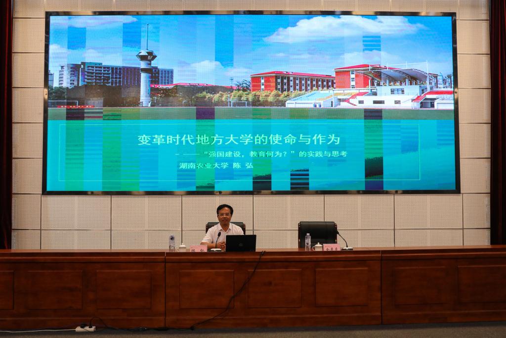 陈弘从“变革时代,对大学使命、任务的再认识”和“面对挑战,面向未来,办人民满意大学的实践与思考”两个方面深入阐释了“什么是好的教育,什么是好的大学”这一历史命题。同时,结合自身经历和湖南农业大学的发展,分享了“大学必须有强烈的使命感”“大学领导者和全体教师必须有坚定的教育信仰和教育追求”“地方大学必须有清晰而坚定的办学定位”“大学应当厚植并坚守正确的教育价值观”“大学必须有明确的发展思路和愿景”“谦卑则生,开放则活,学习则强”“以更大定力守正、更大毅力创新培养拔尖创新型人才”七个方面的体会。