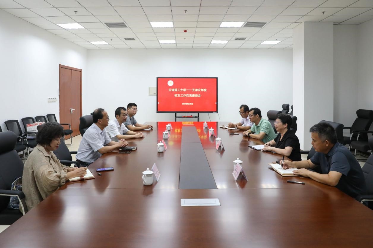 8月22日,天津理工大学校友会会长卢俊瑞带队来贝博,就校友工作进行座谈交流。校党委常委、副校长(主持工作)金危危会见来访客人并参加座谈会。