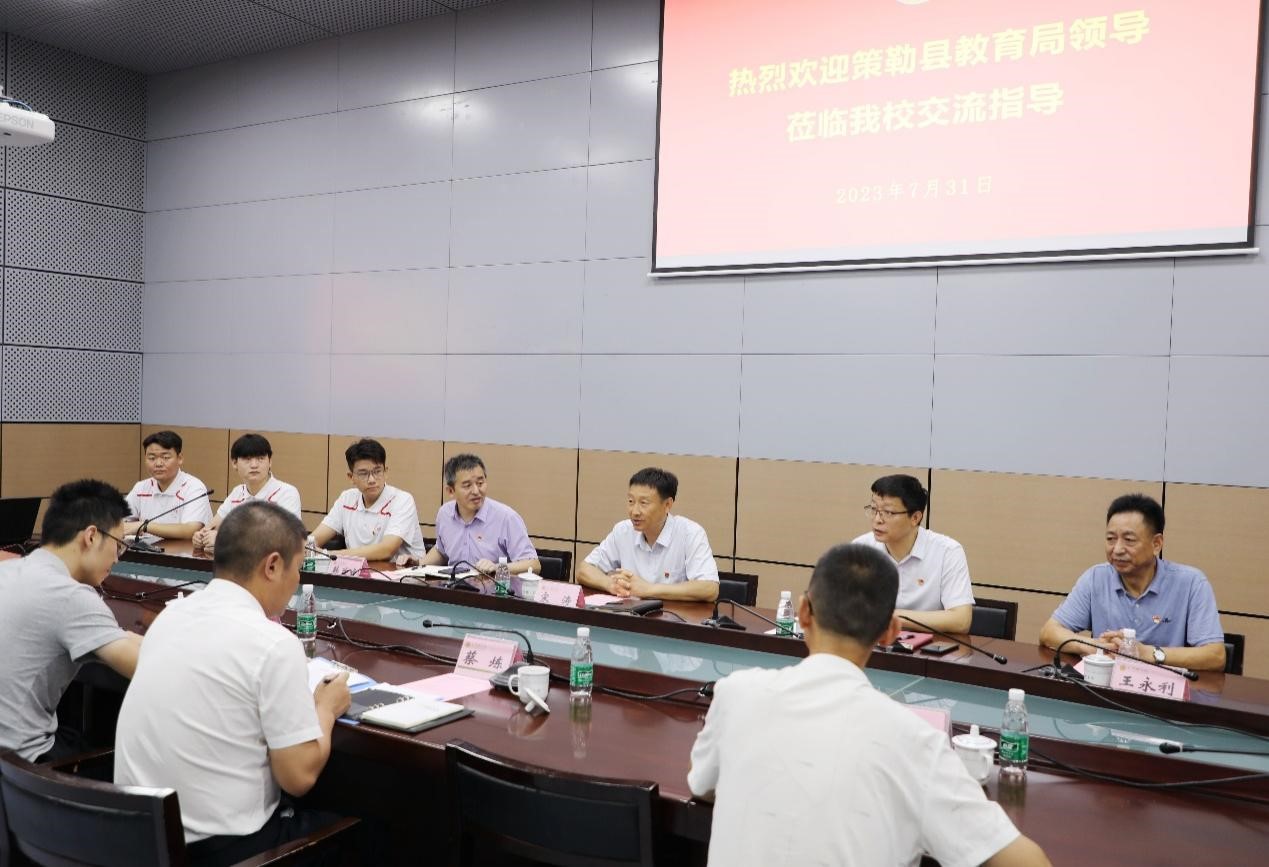7月31日,策勒县教育局教工委副书记、教育局党组书记蔡炼一行3人来贝博回访慰问。校党委副书记宋涛会见到访来宾并参加相关活动。