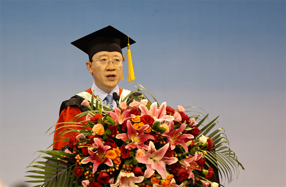 食品科学与生物工程学院闫师杰教授代表全体教师发言,他寄语毕业生自强不息,坚持学习,勇于创新,为自己的青春谱写华丽的乐章。