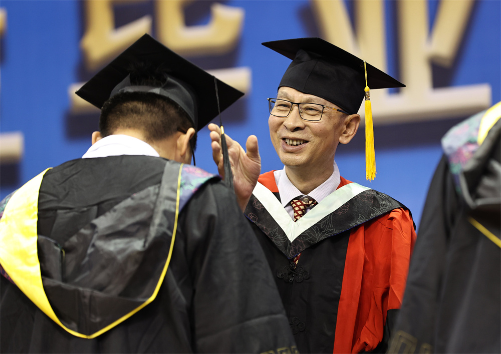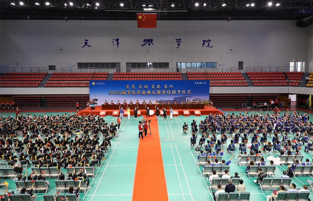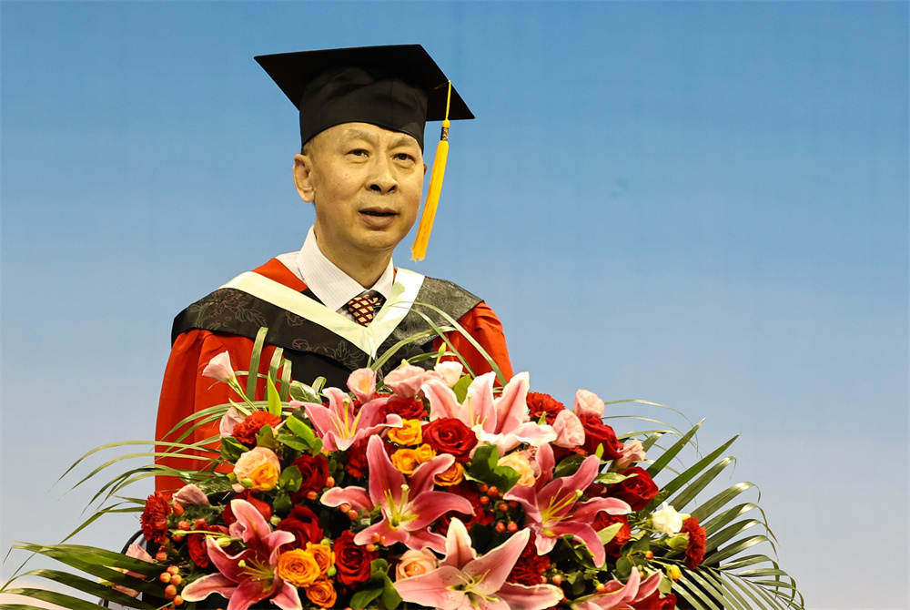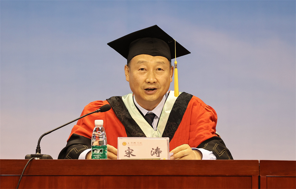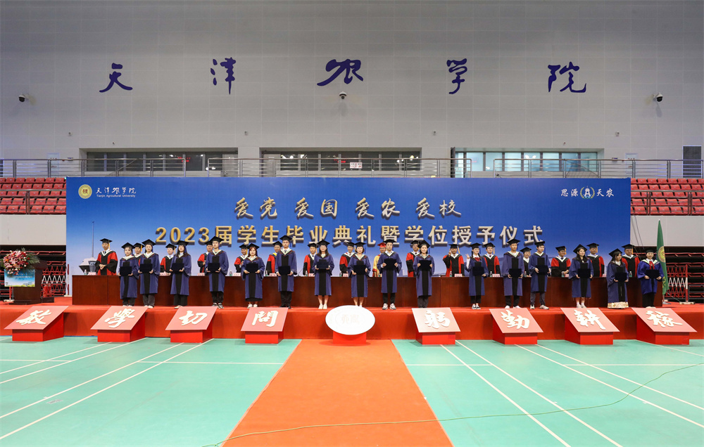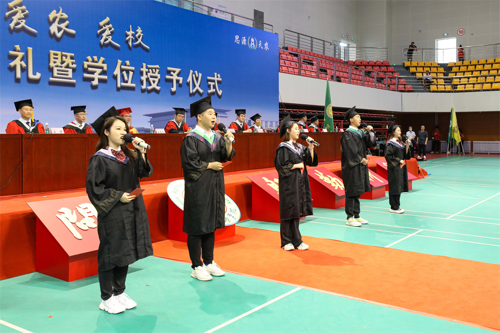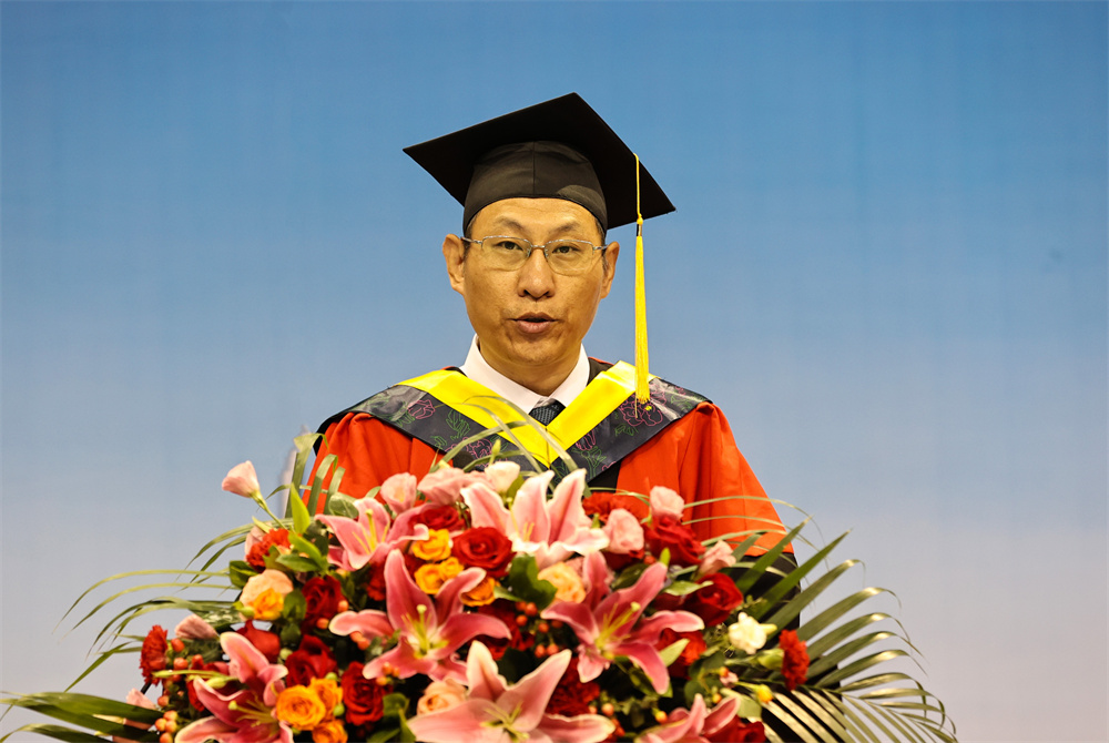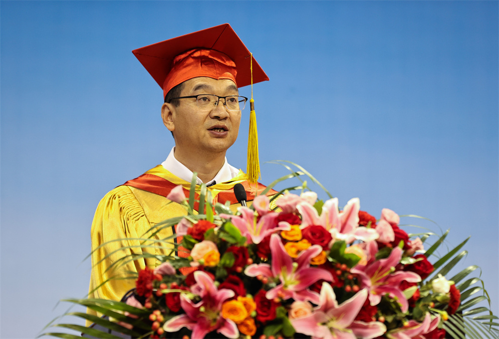 王延文代表学校向所有毕业生表示热烈的祝贺!向所有关心关爱同学们健康成长的老师、家长以及社会各界朋友致以最崇高的敬意。他对毕业生提出三点希望,一要胸怀“国之大者”,勇担时代使命。在今后人生前行的道路上,始终与祖国同心、与时代同行,努力成为堪当民族复兴大任的时代新人。二要提升意志品质,锤炼过硬本领。要敢于负责、勇于担当,不怕任务艰巨,不畏环境艰苦,坚持学习、勇于创新,以实干担当书写时代华章。三要立志强农兴农,扎根基层一线。要情系农桑、扎根沃土,以强农兴农为己任,继续秉承“敏学切问、躬勤耕稼”的天农校训,传承“爱岗敬业,艰苦奋斗,团结向上,自强不息”的天农精神,厚植“爱党、爱国、爱农、爱校”的天农情怀,思源奋进,不负韶华,让青春之花在祖国和人民最需要的地方扎根绽放,为祖国“三农”事业发展不断作出新的贡献。