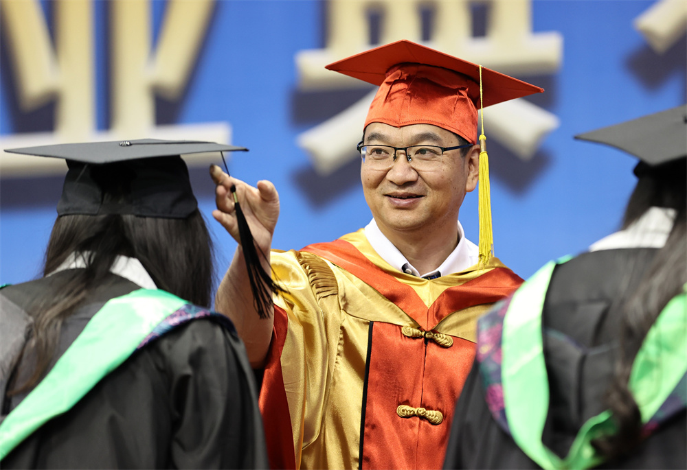 金危危代表学校向全体毕业生表示热烈的祝贺!他讲到,天农见证了同学们青春的最美年华,同学们也见证了天农发展的点点滴滴。在同学们奋楫扬帆之际,对大家提出殷切嘱托。一是以担当之责,坚定不移追求理想。面对乡村振兴、强农兴农使命呼唤,用自身之所学服务国家之所需、人民之所需,让朝气蓬勃的青春之姿展现新时代青年的使命担当。二是以守正之心,持之以恒终生学习。真正把终生学习作为一种生活态度、一种精神追求,在学习中赢得主动、赢得优势、赢得未来。三是以奋斗之姿,实干笃行自立自强。要“自找苦吃”,矢志奋斗,勇于探索新技能、新领域,在吃苦耐劳中有所思、有所获、有所得,在实干笃行中实现自立自强,收获人生奋斗的“甘甜”。