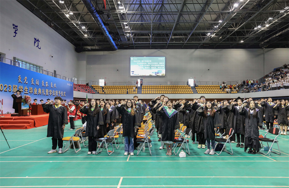 在即将离开天农之际,全体毕业生郑重宣誓,不忘母校培育,谨记天农校训,秉承天农校风,弘扬天农精神,爱党爱国爱农爱校,争做有理想、敢担当、能吃苦、肯奋斗的新时代好青年,思源奋进,为实现中华民族伟大复兴的中国梦不懈奋斗!