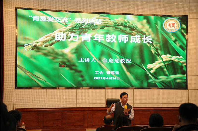 金危危从学校未来的发展定位与发展方向、如何突破个人发展瓶颈、发挥“青葱苑”作为青年教师与学校之间的沟通桥梁和纽带作用等方面与青年教师进行了沟通与交流。他结合自身的成长经历,从人生需要不断努力、人生没有什么困难不能克服、面对困难时候如何进行选择、与他人合作共赢和人生一定要充满希望、充满理想、充满目标等五个方面与大家分享自己在奋斗过程中的人生感悟。通过一件件生动形象的事例,告诉青年教师扎扎实实走好每一步的重要性。他讲到,只有不断为新的目标而奋斗,才有可能遇见更好的平台,更好施展自己的抱负和才华。青年教师是学校未来发展的动力和源泉,希望每位教师都能确定明确的发展目标,并为之不懈努力。与阳光向上的人在一起合作共事,以积极的心态快乐工作和生活,个人一定会拥有美好的未来,天农也一定会更加精彩!