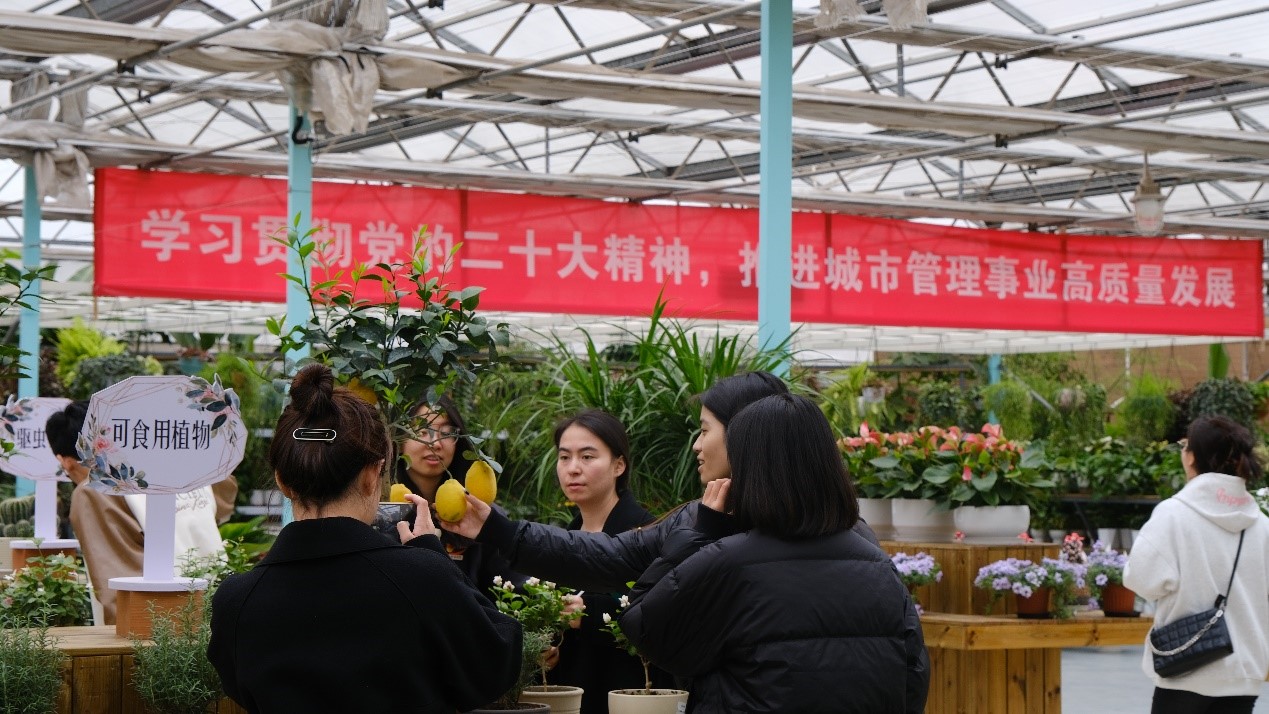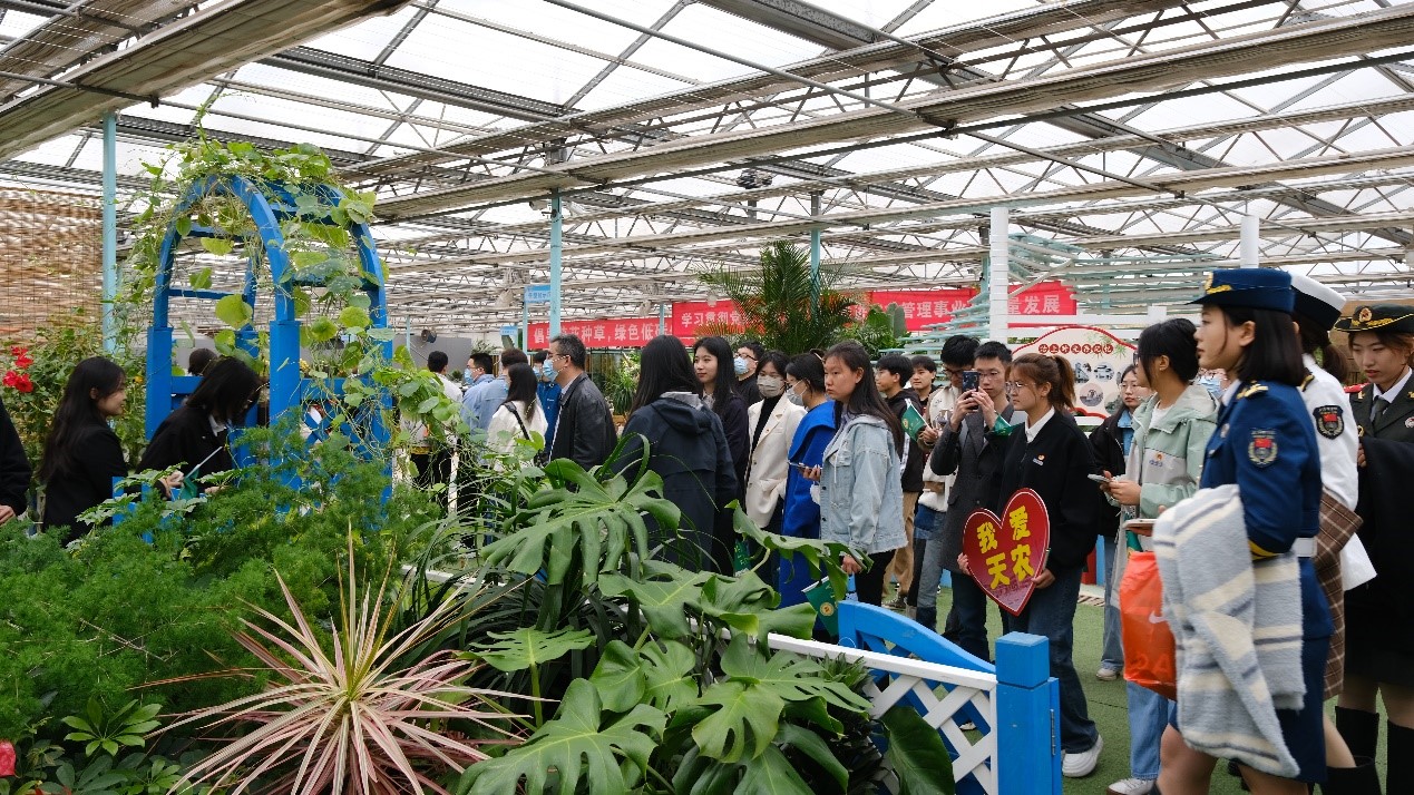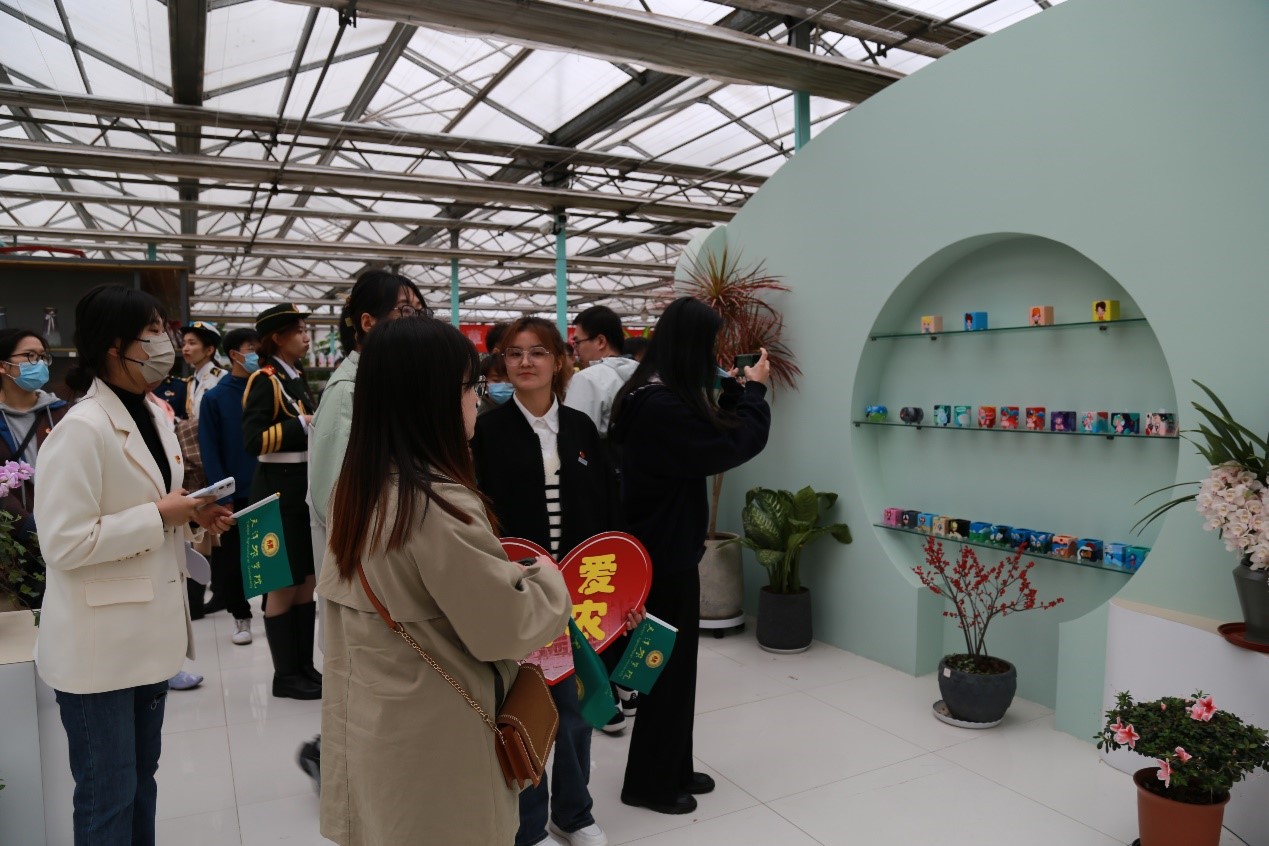 随后,研学团师生来到天津市园林花圃迎春花卉科研培育基地,在讲解员的带领下参观了花卉展区和多肉植物培养基地。现场花卉展品融合了现代手法和传统、民族的表现元素,让同学们了解了传统与现代相融合的园林艺术。就职于该单位的贝博2017届园艺园林学院毕业生李响和师生开展交流,表达了对母校培养的感谢,交流了工作中用“花”语扮靓美丽天津的工作经历。