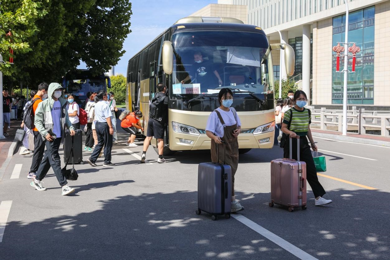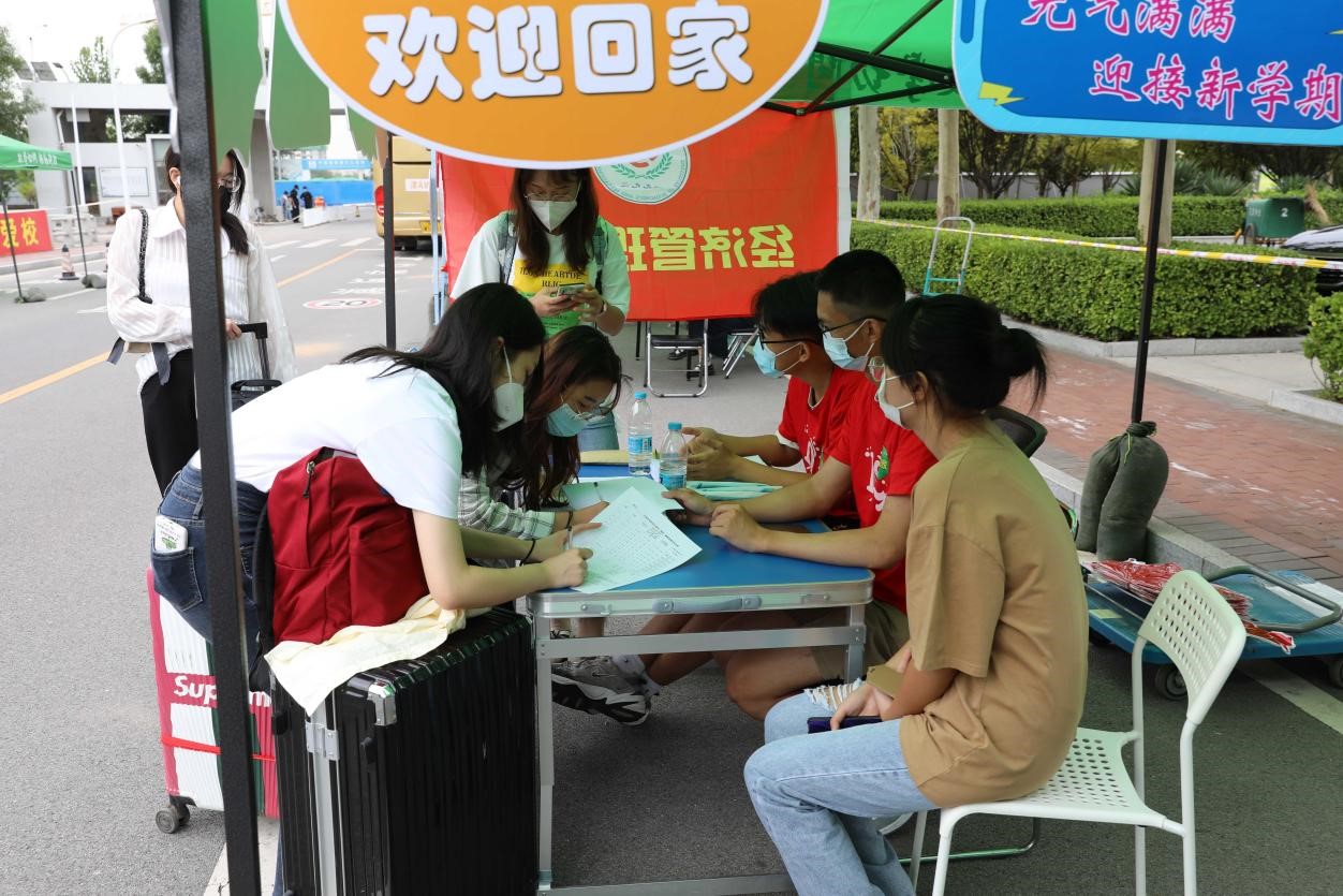 在接站点,老师们和志愿者们提前来到车站、机场,热情接待每一位返校学生。在报到现场,工作人员仔细核验每位学生的返校健康监测信息台账,引导学生进行核酸检测、办理报到手续,志愿者们热情地帮助同学们搬运行李物品。