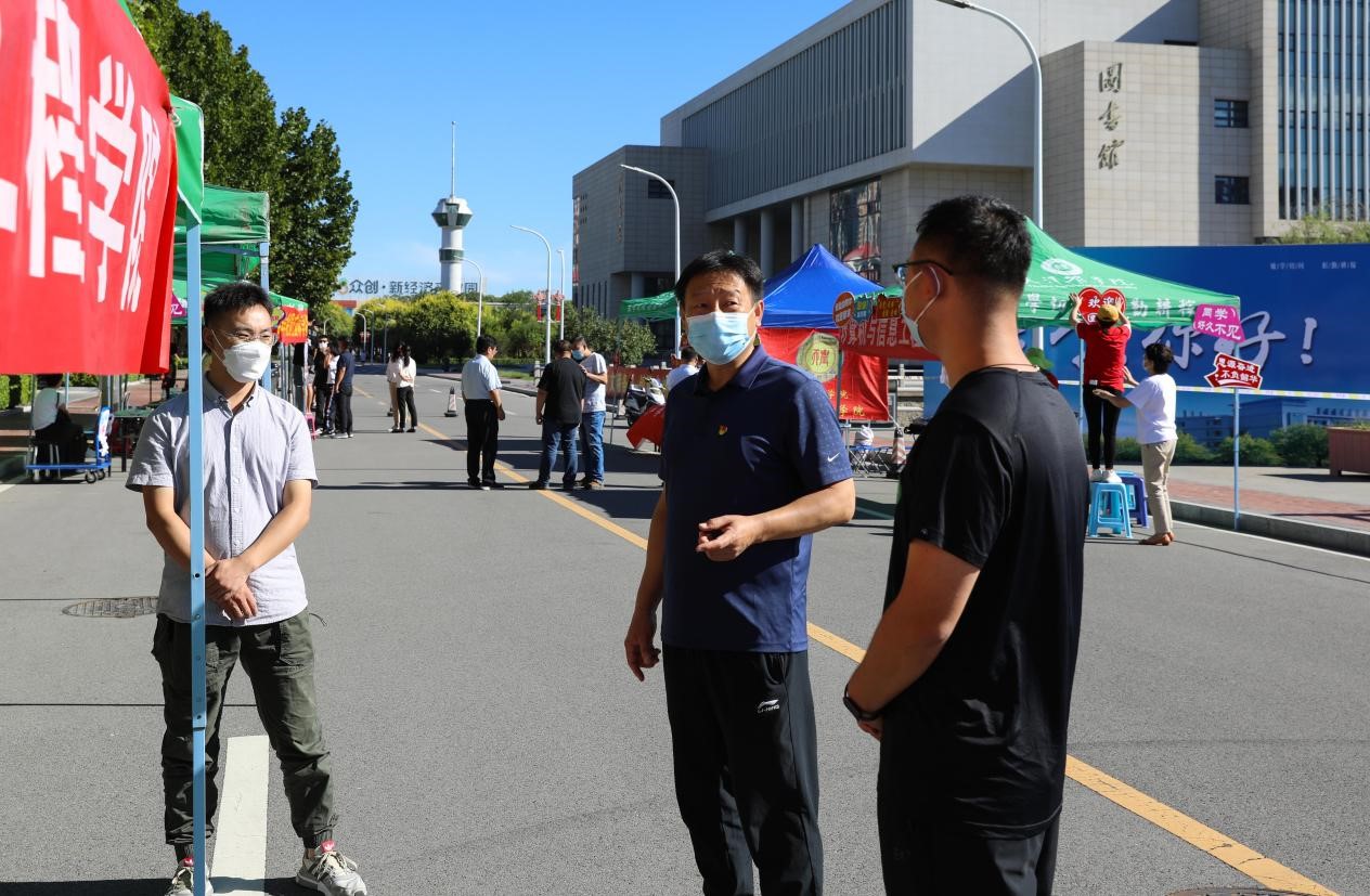 学校党委高度重视学生返校工作,校领导多次深入一线检查指导开学准备工作。返校当日,校党委书记王延文,校党委常委、副校长(主持工作)金危危,校党委副书记宋涛,校党委常委、副校长王繁珍到学生报到现场、超市、食堂等场所慰问坚守一线的工作人员和返校的学生,校领导详细查阅学生登记信息,仔细询问学生返校情况,查看核酸检测现场,并与返校学生亲切交流。在食堂和超市,认真查看物资储备和饭菜供应情况,叮嘱工作人员一定要服务好每一位学生,为学生营造安全健康的校园环境。