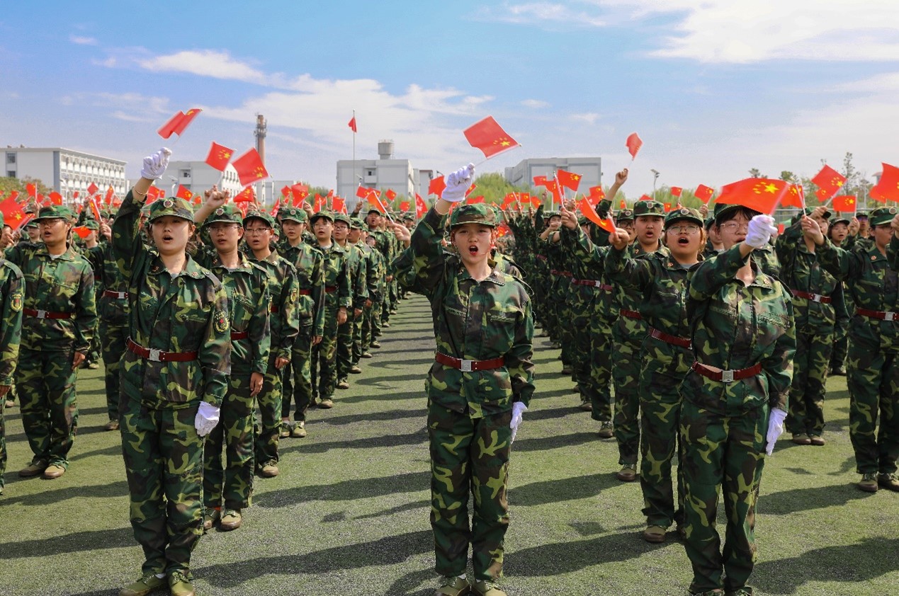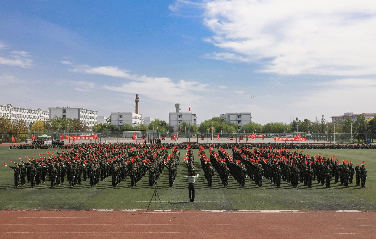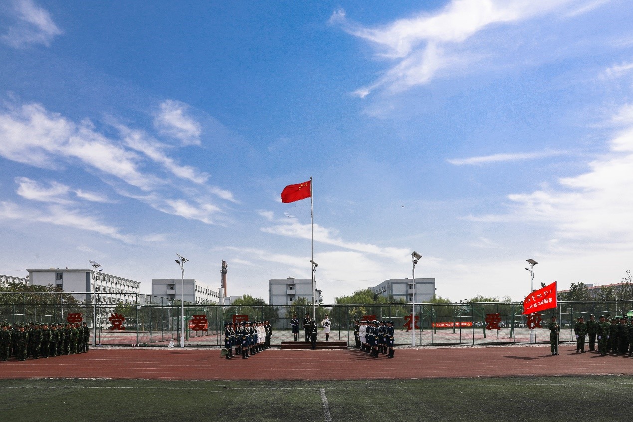 伴随着全场师生嘹亮激昂的国歌声,五星红旗冉冉升起,军训成果汇报大会拉开帷幕。