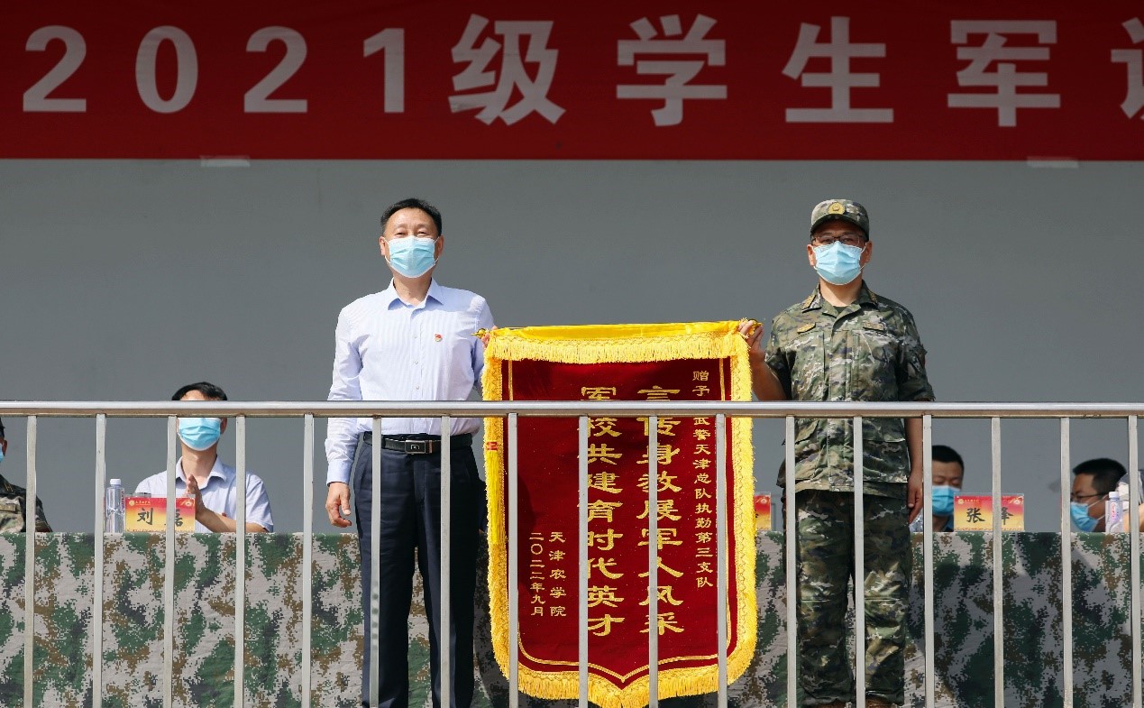 宋涛代表学校向承训部队赠送锦旗,对承训部队在贝博军训工作方面给予的无私帮助和大力支持表示由衷的感谢。