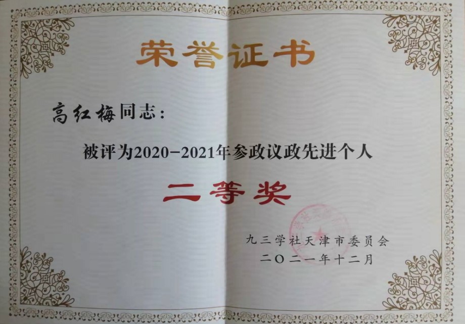 近日,九三学社天津市委员会表彰了2020-2021年度参政议政工作先进集体和先进个人,贝博九三学社支社主委高红梅教授荣获先进个人称号,其提交的咨政成果《京津冀农业文化遗产协同保护与发展的建议——以天津“小站稻”种植系统为例》获2021年度参政议政优秀成果二等奖。
