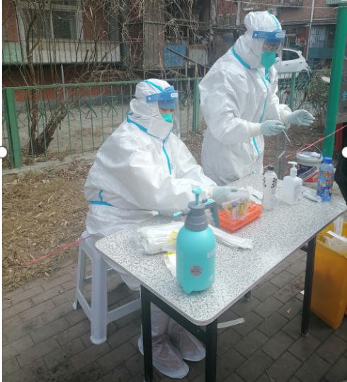 次日凌晨5:00张文娟到达社区,听从社区统一指挥,领取岗位任务。5:30到各楼栋挨家挨户按门铃通知居民测核酸,同时维持居民楼秩序,引导居民有序进行核酸检测。