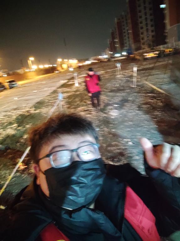 经过沟通,志愿者们分为两组进行轮班。孙学健同学从下午开始便在核酸检测点做志愿者,负责秩序维护、防疫宣传。他按照要求安排引导居民排队,10人一组混检核酸,一直持续到凌晨2点多。“后来,我也数不清一共引导了多少组居民,我第一次意识到我们所在的社区竟然有这么多居民!”