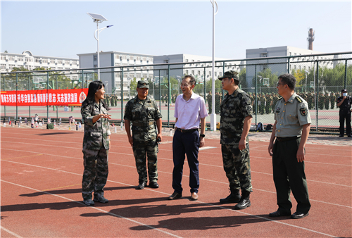 王延文在听取西校区管委会负责同志整体工作汇报后,分别到新引进的商业服务设施、实训基地餐厨处理中心、2020级学生军训现场等处进行考察,并分别与商业服务设施主办方领导、军训承训部队驻训领导等亲切交谈,听取设施配置、施训进展及后续工作安排。
