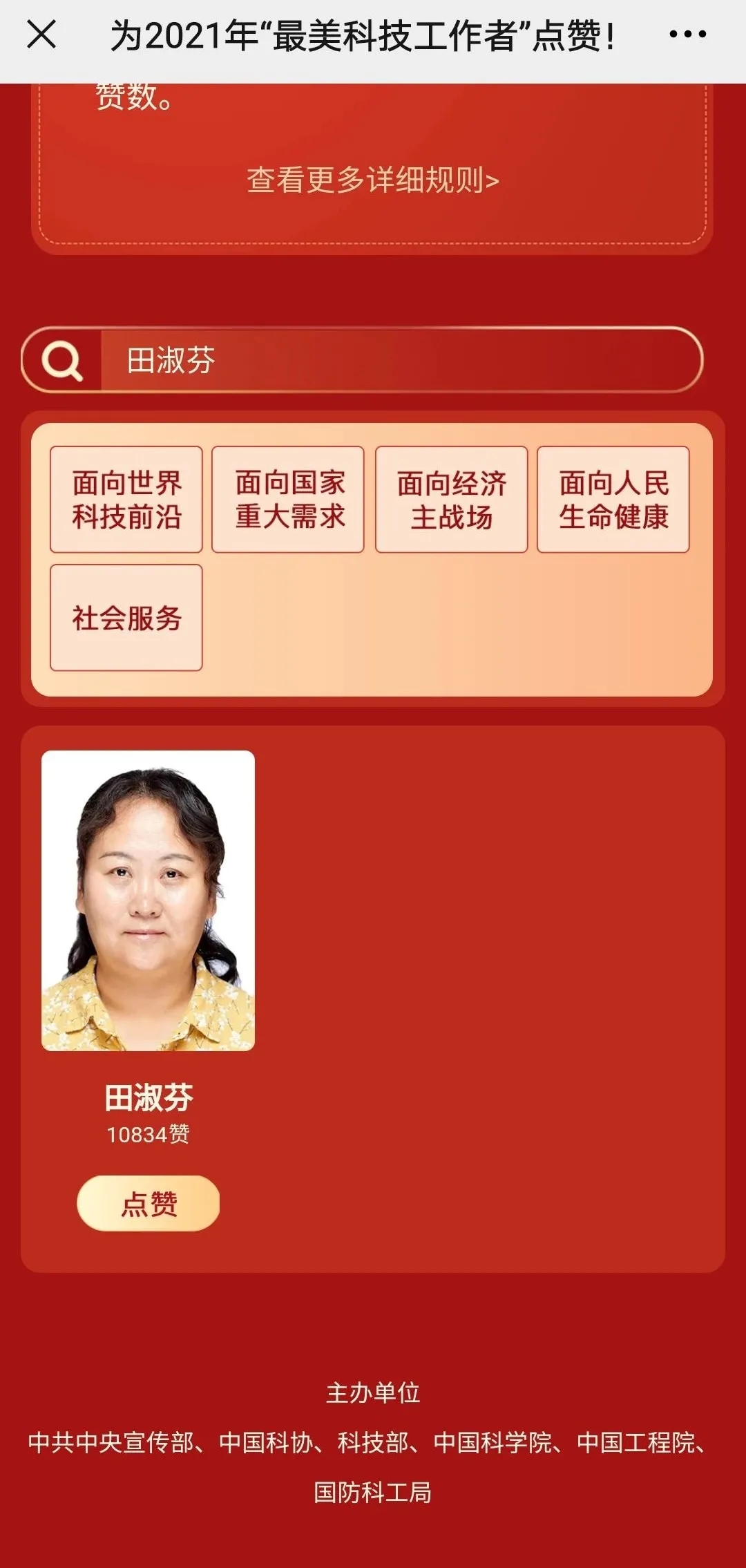 进入点赞页面后,搜索田淑芬点击“点赞”按钮。