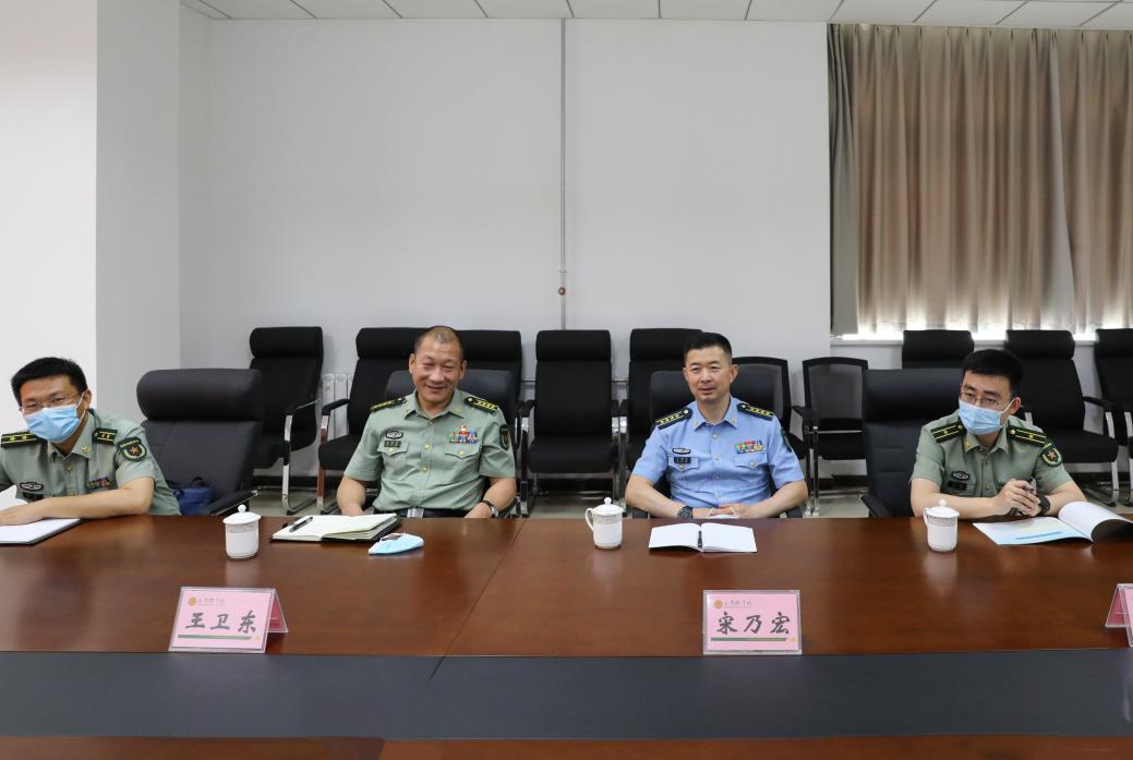 7月6日,天津警备区动员局局长宋乃宏、河东区人武部政委王卫东大校到贝博调研指导武装部建设、征兵工作站建设以及兵员预储等工作,校党委副书记、校长王延文出席。