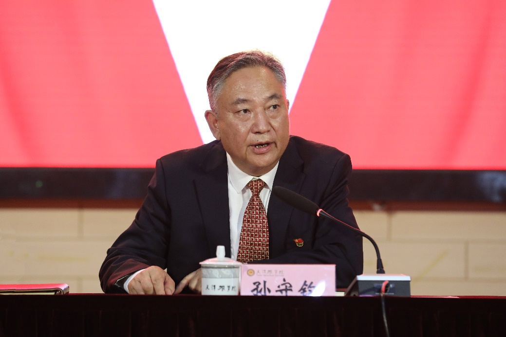 孙守钧指出,在庆祝我们党百年华诞的伟大时刻,我们扎实开展党史学习教育,正当其时。要深入学习领会习近平总书记关于党的历史的重要论述,充分认识开展党史学习教育的重大意义。要认真研读党史基本著作,全面了解中国共产党百年奋斗的光辉历程和历史性贡献。要充分发挥党的历史以史鉴今、资政育人的作用。在庆祝我们党百年华诞的伟大时刻,我们坚持和加强党的领导,进一步夯实党建基层基础,正当其时。要加强党的政治建设,自觉用实际行动践行“两个维护”。要加强党的思想建设,及时跟进学习党的最新理论。要加强党的组织建设,特别是要高度重视基层党建工作,充分发挥党支部的战斗堡垒作用。要加强党的纪律建设和作风建设,以铁的纪律、严的作风树立起新时代党员干部良好形象。在庆祝我们党百年华诞的伟大时刻,我们坚持“树正气、聚人气、鼓士气”,打造干事创业的党员干部队伍,正当其时。办好天农的事情,关键在党;落实党的决策部署,关键在人。党员干部要干事创业、争先有为。要有敢于担当、敢为人先的精神,要具备闯险滩、越关山的能力。党员干部要廉洁自律,不仅要廉洁,更要自律,清正廉洁和严于律己是党员干部的基本要求。在庆祝我们党百年华诞的伟大时刻,我们坚持以立德树人为根本、以强农兴农为己任,接续在希望的田野上建功立业,正当其时。要坚持立德树人的根本任务,发挥好贝博“一二三四五”思政工作体系作用,紧紧围绕“爱党、爱国、爱农、爱校”主题,全面加强思想政治教育,全面深化党史学习教育、推进“四史”教育,不断提升贝博思想政治工作效果。要牢记强农兴农的使命担当,创新人才培养模式,突出“新农科”建设,坚持“五育”并举,培养德智体美劳全面发展,富有“三农”情怀的高素质应用型人才。千秋伟业,百年正是风华正茂;征途漫漫,唯有奋斗方可前行致远。新时代、新征程,让我们从百年党史中汲取奋进的力量,坚持以立德树人为根本、以强农兴农为己任,为助力乡村振兴、建设高水平农业大学砥砺奋斗,为实现中华民族伟大复兴砥砺奋斗!
