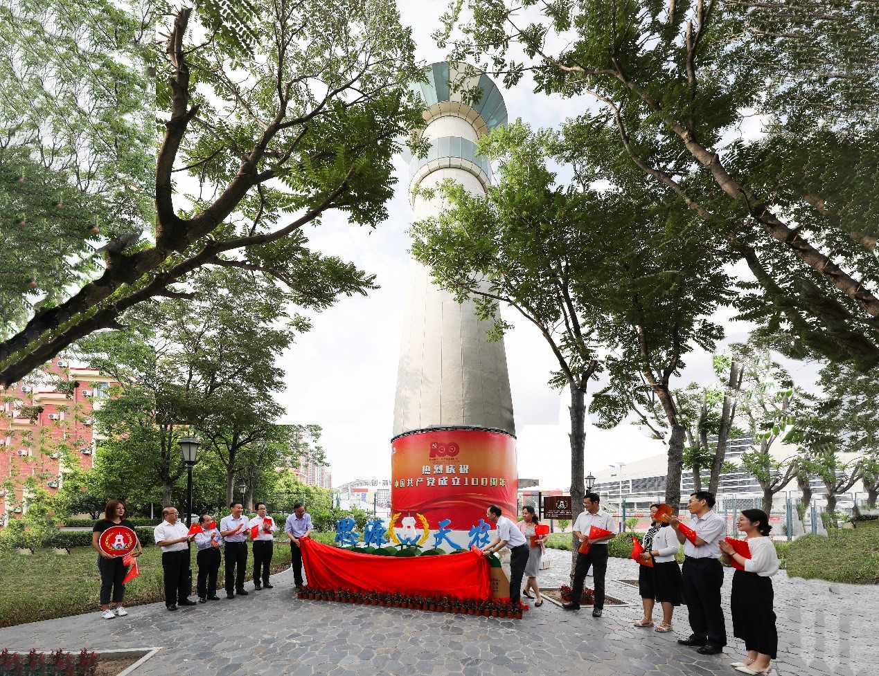孙守钧指出,今天活动的地点选在历经风雨沧桑和时代变革的老水塔下方,也具有着特殊的意义。从1985年学校迁入现址后,水塔就源源不断为全校师生提供甘冽的清水,滋养了几代天农人,见证了学校的发展,承载了一段历史和一种精神,作为一段难以磨灭的记忆,永远停留在岁月的收藏夹中。2017年校园环境提升改造对水塔进行重新修葺,将废弃多年的水塔改造为灯塔,旨在以理想之光照亮师生奋斗前行之路。水塔重新散发光辉,成为学校新的标志性景观建筑。回忆过往是为了更好地展望未来,铭记历史是为了更好地砥砺前行。我们在党的百年华诞之日,将“思源天农”文化景观落成在灯塔下方,既是对天农师生45年来知党爱党、知史爱国、知农爱农、知荣爱校的深情回顾,更是为了号召全校师生继承和发扬“爱岗敬业,艰苦奋斗,团结向上,自强不息”的天农精神,激励大家百尺竿头、更进一步、再创佳绩。