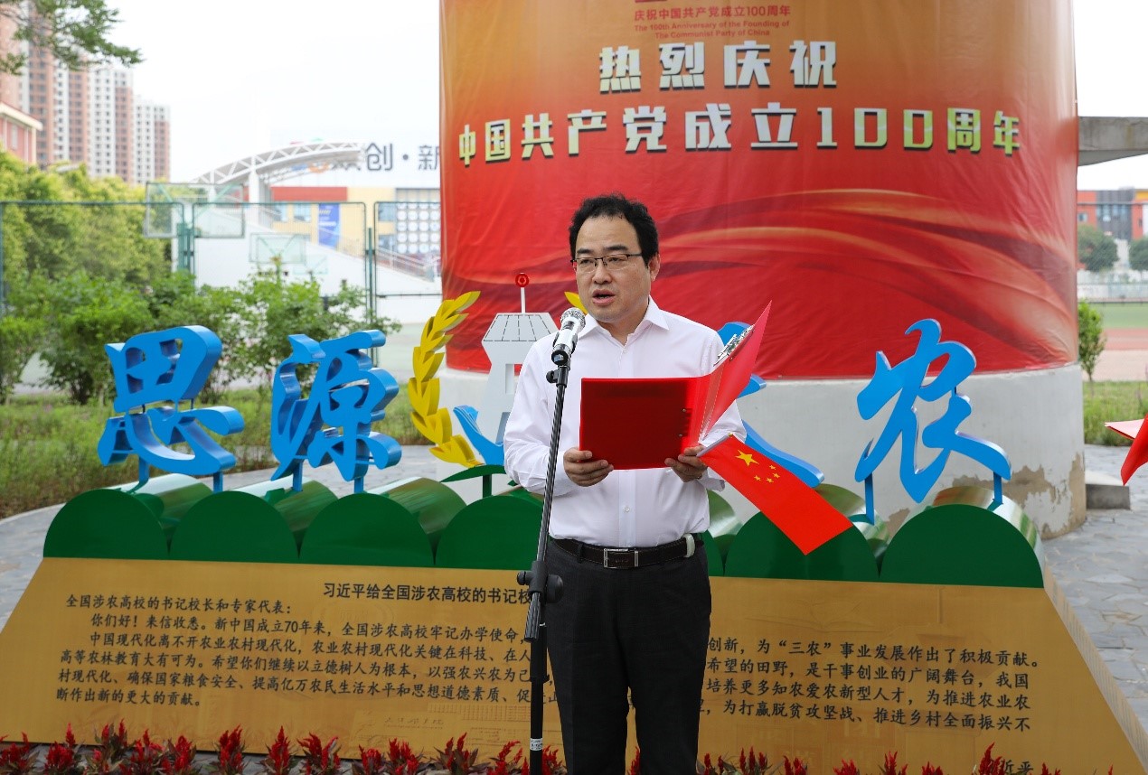 奋进百年路,启航新征程。思源奋进的天农人将始终坚持以习近平新时代中国特色社会主义思想为指导,牢记初心使命,坚定理想信念,不忘来时奋斗路,感恩党、感恩国家、感恩农耕文明、感恩母校,眺望前方奋进路,坚持立德树人根本任务、以强农兴农为己任,不断焕发出思源奋进,同心向上的力量,努力建设高水平农业大学,为助力乡村振兴做出天农人更大的贡献。 (党办、校办、宣传部供稿;文字:宣传部;摄影:陈卫东;编辑:黄宝霞;审校:田健 赵斌)