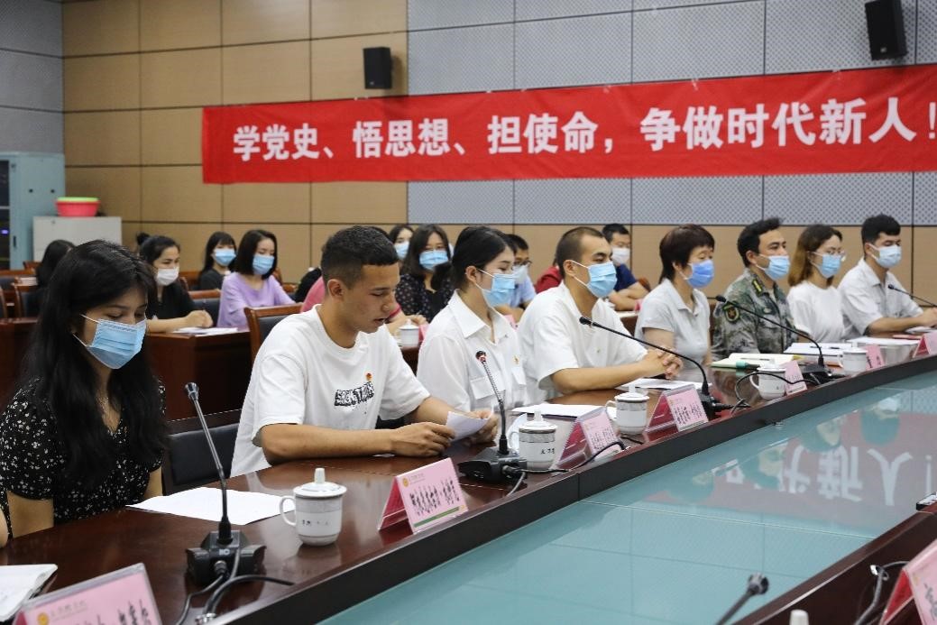 在学生代表发言中,农学与资源环境学院学生党员茹曼古丽讲到,感恩党组织的培养、感谢学校的悉心关怀,要认真学习党史知识,紧紧围绕学史明理、学史增信、学史崇德、学史力行的要求,不断增强党性修养,不断提升践行宗旨的能力素质,努力做到知行合一,以实际行动迎接中国共产党成立100周年。食品科学与生物工程学院阿衣先木古丽、动物科学与动物医学学院依力牙尔、经济管理学院苏力坦等同学纷纷表示,要以天农人更加饱满的热情、最昂扬的姿态庆祝中国共产党成立100周年,今后会好好把握和珍惜学习机会,不断提升自我,维护民族团结,爱我锦绣中华,为实现中华民族伟大复兴的中国梦贡献自己的青春力量。