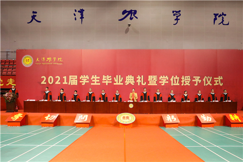 主席台领导为高职毕业生代表颁发毕业证书,为获得学士学位的毕业生代表和获得硕士学位的毕业生颁发毕业证书,并授学士礼、硕士礼,同时,向“大学生成才奖”获奖学生代表颁发荣誉证书。典礼庄重热烈,帽穗从右边拨到左边,象征着毕业生将从天农校园出发,踏上新的人生征途。