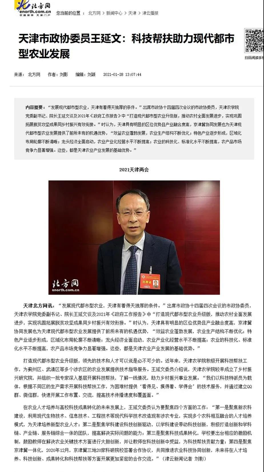 2021年1月28日北方网讯,市政协委员、贝博党委副书记、校长王延文教授出席市政协十四届四次会议,并就农业人才培养与高校科技成果转化的未来发展等问题接受了记者采访,原文如下: