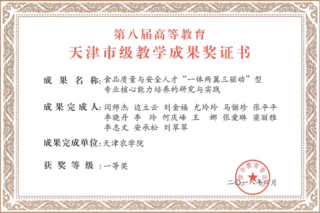 获批教育部新工科、新农科研究与实践项目各1项,天津市重点教改项目1项。《食品化学》《食品质量保证与控制》《食品质量与安全实验》等3门课程入选天津市一流本科建设课程,3门课程入选校级一流建设课程,获批5个课程思政示范课程建设项目。刘金福教授主编的《食品质量与安全管理》推荐参加首届全国教材建设奖全国优秀教材评选。闫师杰教授荣获天津市教学名师奖。新立国家自然科学基金面上项目1项,省部级科研项目4项。周颖同学获国家奖学金,丁鑫等8名同学获国家励志奖学金,金雨婷等6名同学获校级三好学生,仇岑等4名同学获校级优秀干部。2020届食安专业学生就业率位居学校前列,考研率达23.2%,其中5名同学考取了中国农业大学、江南大学等国内985、211大学。(教务处供稿;文字:刘慧 尤玲玲;摄影:陈卫东 张爱琳;编辑:黄宝霞;审校:田健 赵斌)