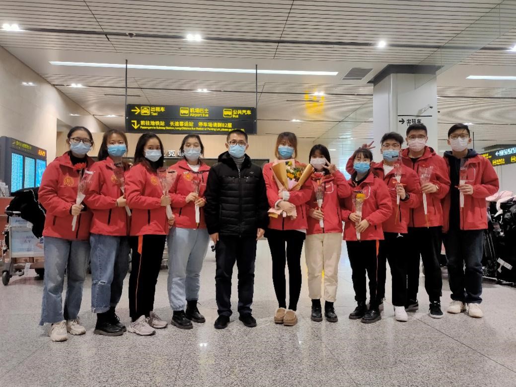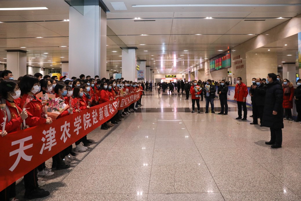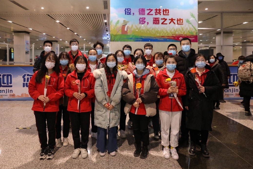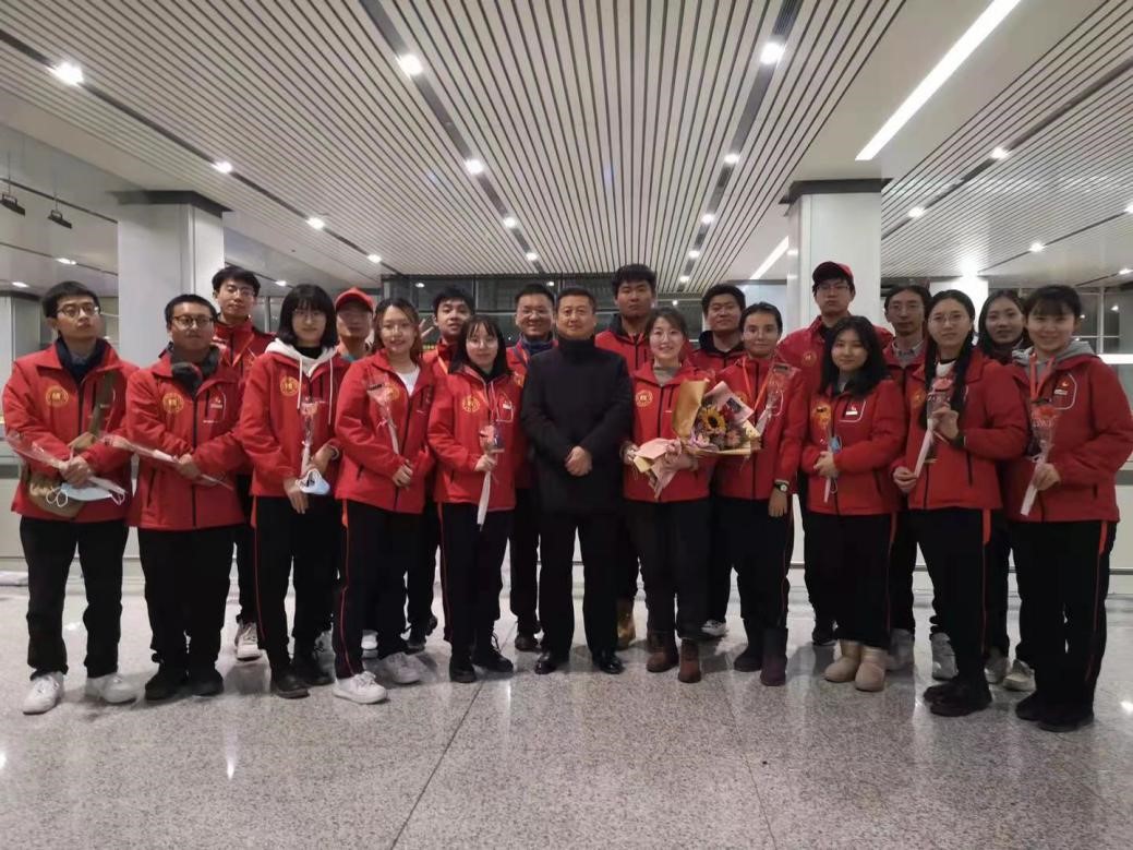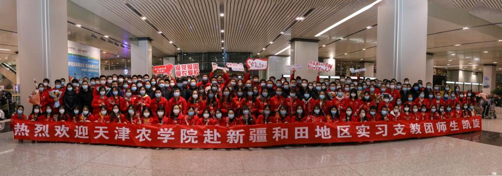 2020年12月30日晚,贝博赴新疆和田地区实习支教的140名师生带着津和两地人民的深情厚谊,圆满完成各项任务平安抵达天津。按照学校党委安排,校党委副书记宋涛带队前往天津滨海国际机场迎接载誉而归的实习支教团师生,党办、组织部、宣传部、学工部、研工部、校团委及各学院的负责同志一同到机场迎接。