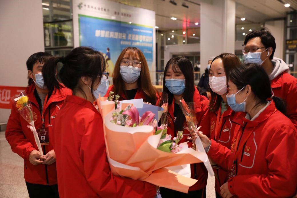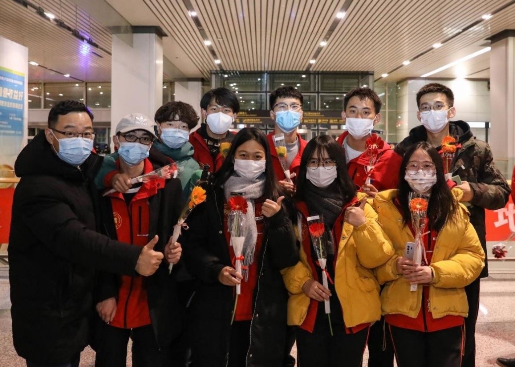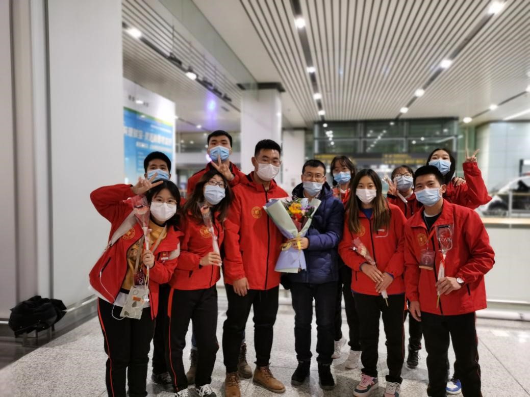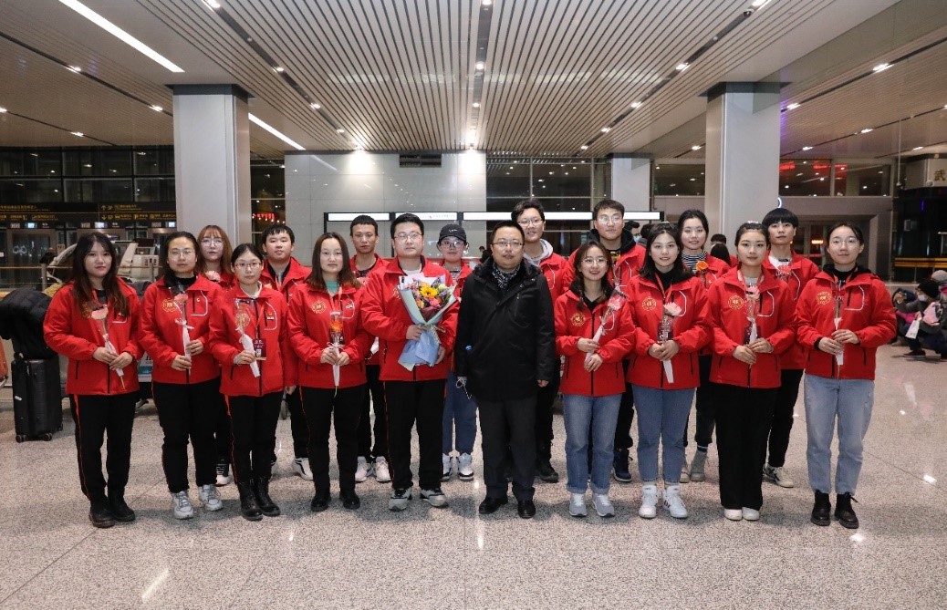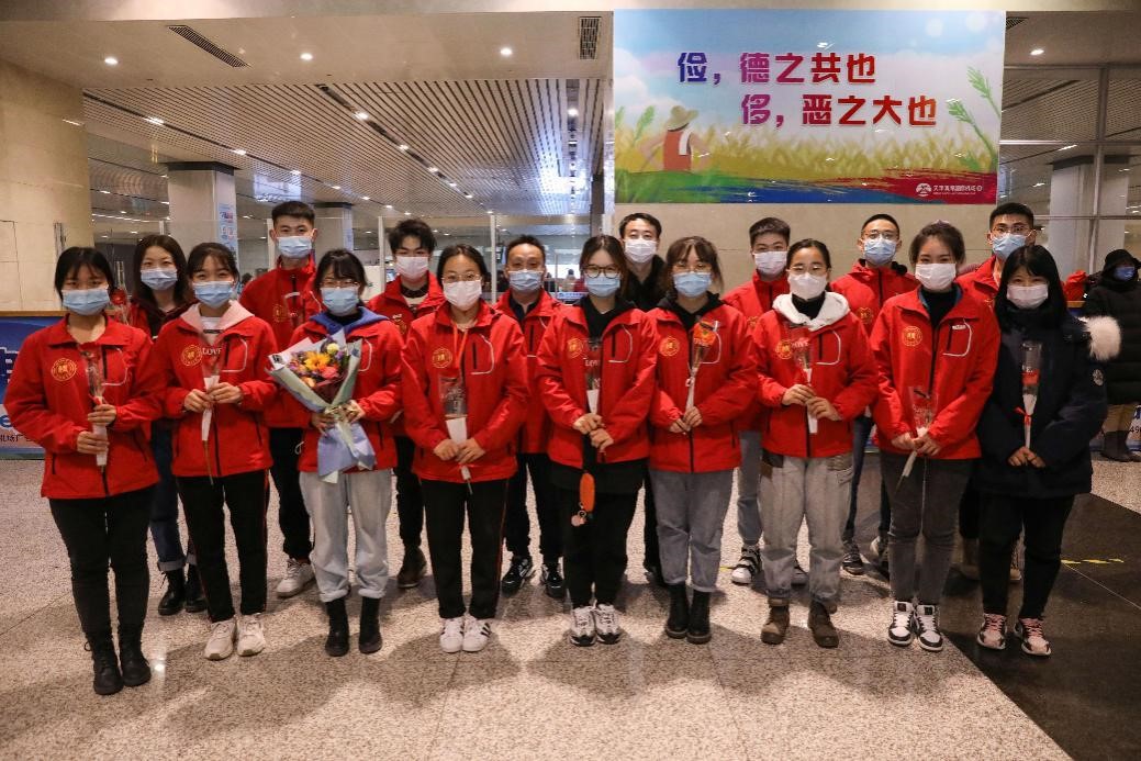 2020年12月30日晚,贝博赴新疆和田地区实习支教的140名师生带着津和两地人民的深情厚谊,圆满完成各项任务平安抵达天津。按照学校党委安排,校党委副书记宋涛带队前往天津滨海国际机场迎接载誉而归的实习支教团师生,党办、组织部、宣传部、学工部、研工部、校团委及各学院的负责同志一同到机场迎接。