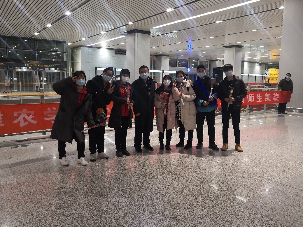 支教团师生抵达后,学校在机场大厅举行了简短的迎接仪式。支教团每一位师生第一时间收到了学校师生送上的鲜花,倍感温馨。在欢迎仪式上,校党委副书记宋涛首先转达了学校党委和全体师生对支教团师生的问候,欢迎老师和同学们平安载誉归来,祝贺支教团圆满完成了光荣的支教工作,感谢支教团全体师生富有成效的辛苦付出。他说,此次援疆支教工作,市委市政府和市教育两委始终高度重视,全程关注,给予具体指导和帮助,学校党委行政始终关心关怀支教团的师生,以各种形式及时送去慰问。三个月来,支教团师生带着使命和责任真情支教,为边疆地区的教育事业贡献自己的力量,充分展现了天农师生的青春风采。希望大家继续发扬天农精神,在新的一年取得更大的成绩和收获。