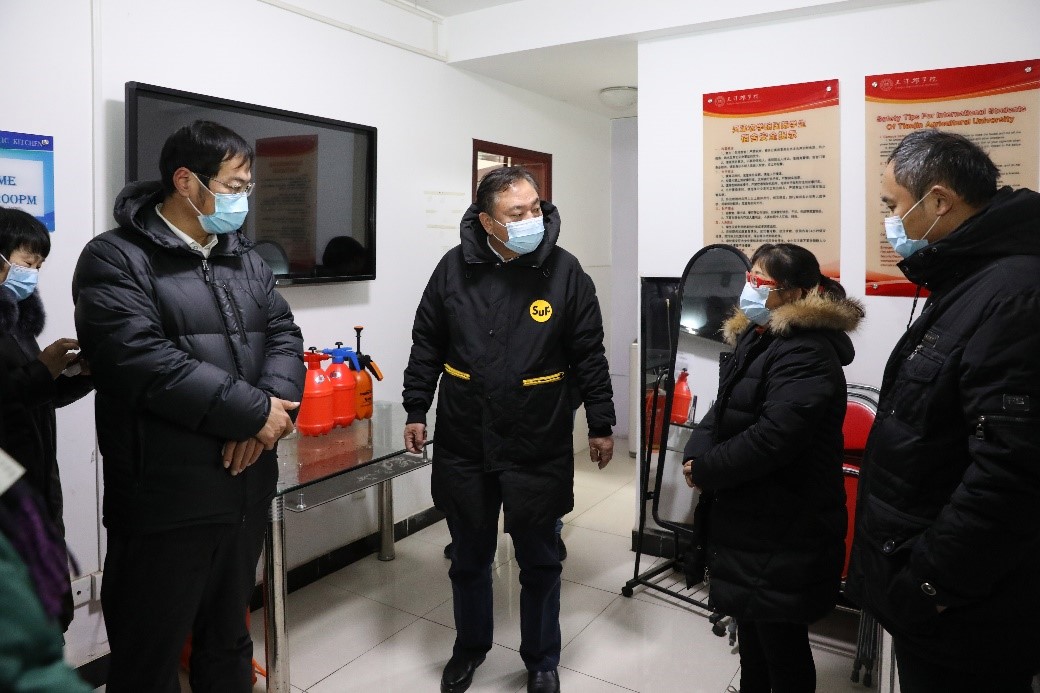 孙守钧一行重点对留学生公寓、教学楼、实验楼、餐厅、附属动物医院、实验楼改扩建项目工地等场所的在校人员学习生活工作情况进行了调研,对疫情防控物资储备情况进行了查看,对留学生公寓等学习生活场所的通风、消毒、出入登记测温,以及在校居住人员离校审批制度等疫情防控措施落实情况进行了现场检查和指导。孙守钧强调,要高度重视假期疫情防控工作,继续扎实落实各项工作部署,持续做到严之又严、细之又细、实之又实,确保在校学生的学习生活正常有序。