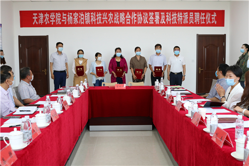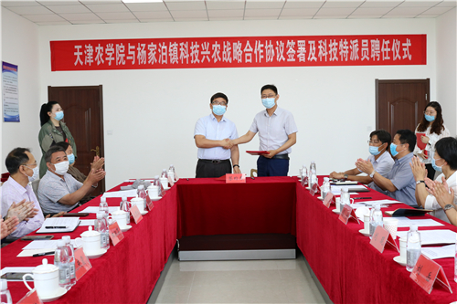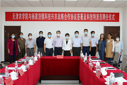 6月2日,乡村振兴研究院与杨家泊镇人民政府科技兴农战略合作协议签署及科技特派员聘任仪式在杨家泊镇文化中心举行。滨海新区区委常委、组织部长张弢,贝博党委副书记、校长王延文和副校长、乡村振兴研究院院长赵辉,杨家泊镇党委书记闫宁和党委副书记、镇长刘向昱出席,仪式由杨家泊镇党委副书记刘琨主持。