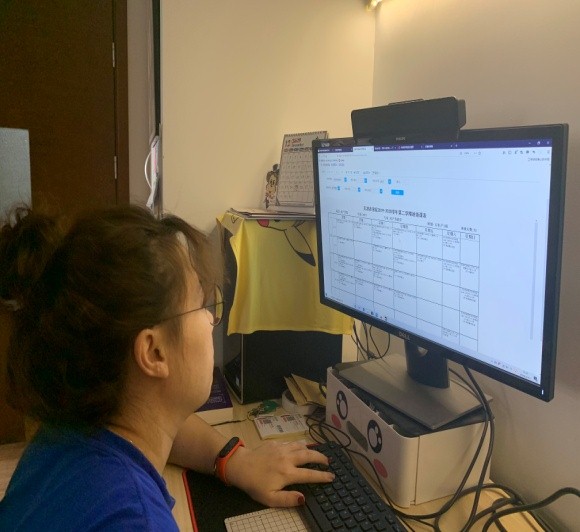 水利工程学院的教学秘书王丽珍老师仔细研读、认真梳理校内文件,协助学院领导制定切实可行的工作安排。为了统计分析在线教学情况,她跟随学生一起进入课堂,及时帮助解决授课中遇到的问题,总结各平台使用中的优缺点并每天反馈给教务处,尽最大可能服务老师、服务学生。