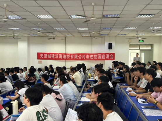 宣讲会上,企业代表通过详细介绍天津城建滨海路桥有限公司的情况。帮助学院学生充分了解企业状况、工作内容、核心业务、培养体系、招聘要求、薪资待遇等内容。通过案例分析和深入浅出的讲解。学生们对企业有了直观深入的了解,激发了对未来职业生涯的憧憬与规划。