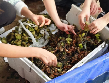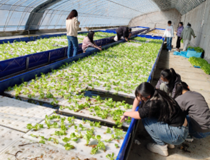 参与“鱼菜共生”项目的种植蔬菜活动。3月9日、11日,在“植树节”即将到来之际,学院组织2023级全体团员青年到西校实践基地参与“鱼菜共生”项目的种植蔬菜活动。同学们将泡沫板铺到养鱼的池塘上,将菜苗按照流程整理好,并插到泡沫板里,以此实现动物、植物和微生物之间的协同共生。此次活动,同学们既学习了新型复合耕作体系,又亲身参与到节约资源、生态环保的行动中。