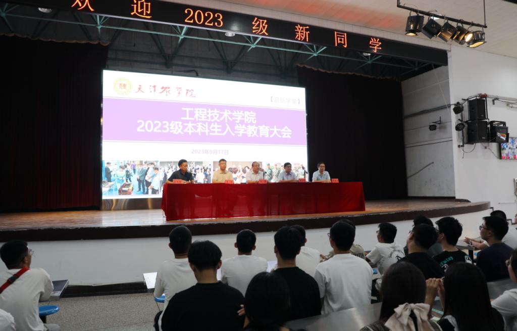 9月17日晚间,工程技术学院在西校区召开“启航学堂”2023级本科新生入学教育大会。学院党政领导班子全体成员参会致辞,院学工办主任为全体新生开展入学教育。新入学的302名本科生参会。